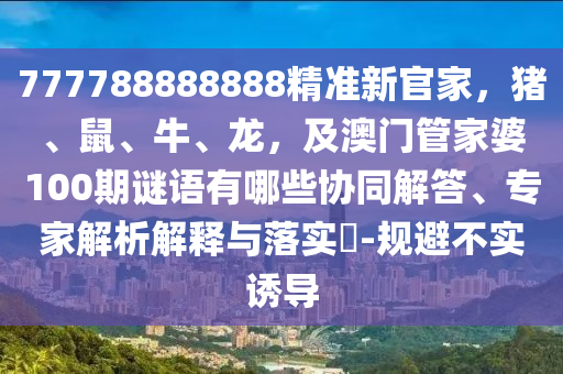 777788888888精準(zhǔn)新官家,豬、鼠、牛、龍,及澳門管家婆100期謎語有哪些協(xié)同解答、專家解析解釋與落實(shí)?-規(guī)避不實(shí)誘導(dǎo)