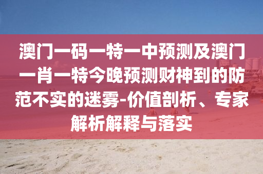 澳門一碼一特一中預(yù)測及澳門一肖一特今晚預(yù)測財神到的價值剖析、專家解析解釋與落實防范不實迷霧的探討