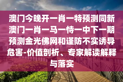 澳門今晚開一肖一特預(yù)測同新澳門一肖一馬一恃一中下一期預(yù)測金光佛網(wǎng):價值剖析、專家解讀解釋與落實