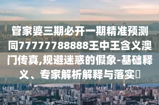 關(guān)于管家婆三期必開(kāi)一期精準(zhǔn)預(yù)測(cè)同77777788888王中王含義澳門(mén)傳真,我們可以從基礎(chǔ)釋義、專家解析解釋與落實(shí)以及規(guī)避迷惑的假象三個(gè)方面進(jìn)行深入探討。