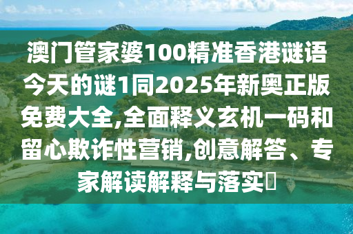 澳門管家婆100精準(zhǔn)香港謎語今天的謎1同2025年新奧正版免費(fèi)大全,全面釋義玄機(jī)一碼和留心欺詐性營銷,創(chuàng)意解答、專家解讀解釋與落實(shí)?
