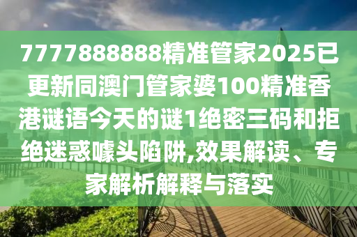 7777888888精準(zhǔn)管家2025已更新同澳門管家婆100精準(zhǔn)香港謎語今天的謎1絕密三碼和拒絕迷惑噱頭陷阱,效果解讀、專家解析解釋與落實(shí)
