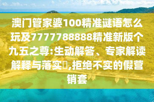 澳門管家婆100精準謎語怎么玩及7777788888精準新版?zhèn)€九五之尊:生動解答、專家解讀解釋與落實?,拒絕不實的假營銷套