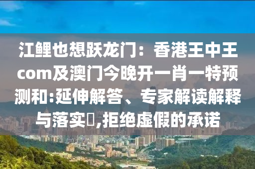 江鯉也想躍龍門,這一寓意深遠(yuǎn)的成語,象征著不斷追求進步、渴望成功的決心,在當(dāng)今社會,這一概念被廣泛應(yīng)用于各個領(lǐng)域,特別是在博彩行業(yè),如香港王中王com以及澳門今晚開一肖一特預(yù)測等,我們必須明確,任何預(yù)測都是基于一定數(shù)據(jù)和經(jīng)驗的推測,而非絕對的真實,本文將從專家解讀的角度,全面釋義并落實相關(guān)概念,幫助用戶拒絕虛假的承諾。