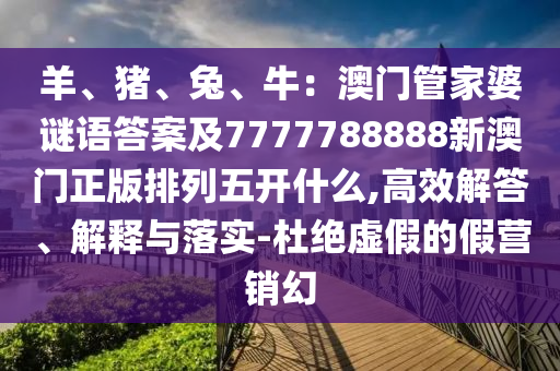 關(guān)于羊、豬、兔、牛:澳門管家婆謎語(yǔ)答案及7777788888新澳門正版排列五的開獎(jiǎng)概念,這是一個(gè)涉及多個(gè)領(lǐng)域的問(wèn)題,包括動(dòng)物象征意義、博彩行業(yè)術(shù)語(yǔ)以及可能的網(wǎng)絡(luò)虛假營(yíng)銷等,我們將從專家解讀的角度,全面釋義并落實(shí)相關(guān)概念,幫助用戶理解并杜絕虛假的假營(yíng)銷幻。